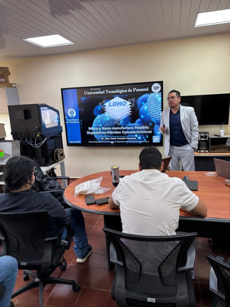 La Primera Promoción en Centros Regionales del Programa de Maestría en Ciencias de la Ingeniería Mecánica (Azuero) contó con la visita del Dr. Luis Marcelo Lozano y el Dr. Alan Sustaita, del 19 al 21 de agosto de 2025. El Dr. Luis Marcelo Lozano y el Dr. Alan Sustaita, son docentes del Tec de Monterrey en los campus de Guadalajara y Monterrey, México, respectivamente. Durante su visita, los doctores ofrecieron información sobre sus temas de investigación, Superando los Límites Térmicos: Ingeniería a Nanoescala de Polímeros Funcionales” (Dr. Luis Marcelo Lozano) y “Micro-y Nano-manufactura Flexible: Dispositivos Híbridos Optoelectrónicos” (Dr. Alan Sustaita). Ambos doctores también indicaron acerca de las oportunidades de colaboración y de trabajo en conjunto entre ambas instituciones.